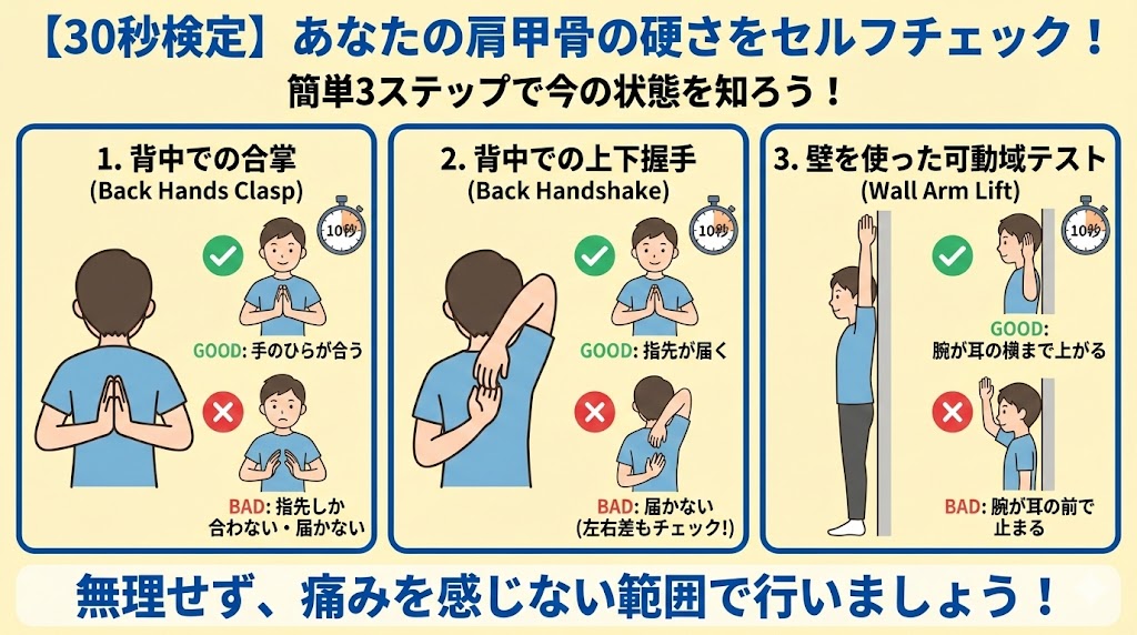 2.【30秒検定】あなたの肩甲骨の硬さをセルフチェック!