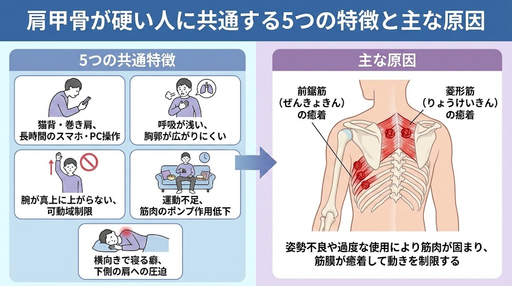 1.肩甲骨が硬い人に共通する5つの特徴と主な原因