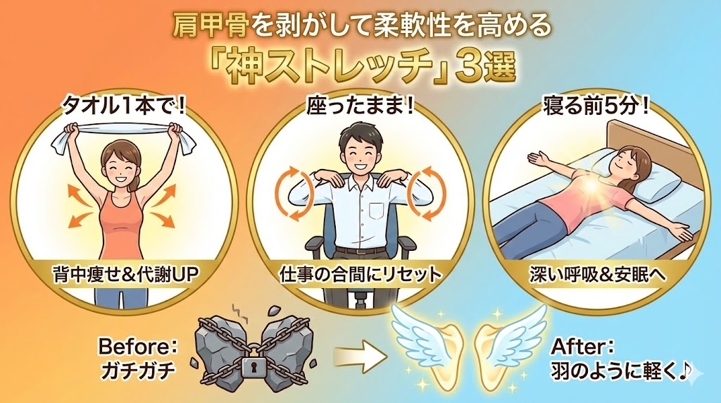 4.肩甲骨を剥がして柔軟性を高める「神ストレッチ」3選
