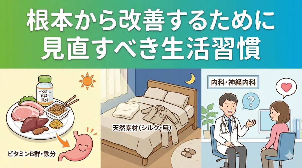「その場しのぎではなく、ぐっすり眠れる体を取り戻したい……」そう思うのは、とても自然なことですよね。足の火照りに振り回されない毎日のためには、日々のちょっとした習慣を見直すことが、遠回りに見えて実は近道だと言われています。