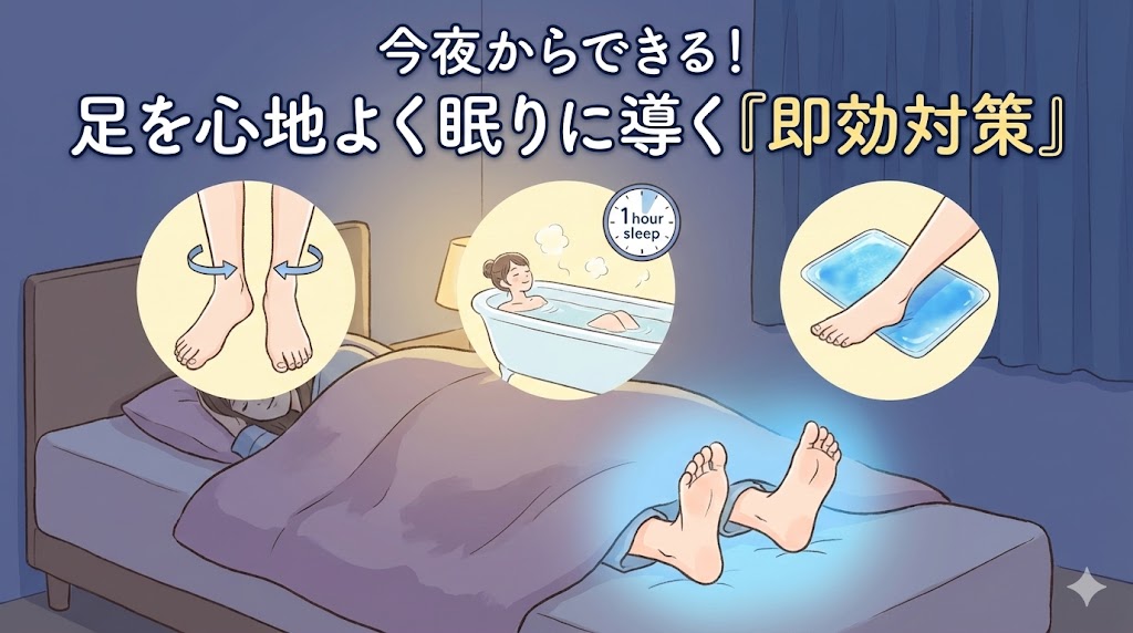 「足が熱くて、今すぐなんとかしたい!」そんな時に役立つ、眠りのスイッチを入れるための具体的なセルフケアをお伝えしますね。どれも今日からすぐにお家で試せるものばかりですよ。