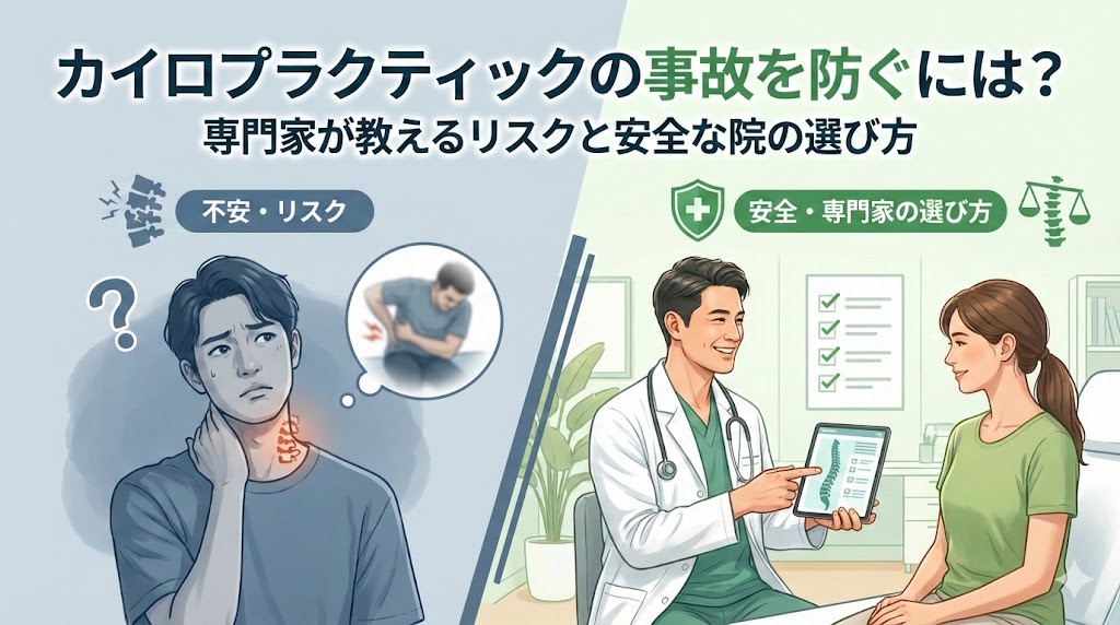 カイロプラクティックの事故の実態とリスクを徹底解説。消費者庁の報告にある神経損傷や骨折などの事例から、施術を受けてはいけない人の特徴、安全な施術院を見極める5つのチェックリストまで紹介します。不安を解消し、安心・安全に体のケアを行うための知識を身につけましょう。