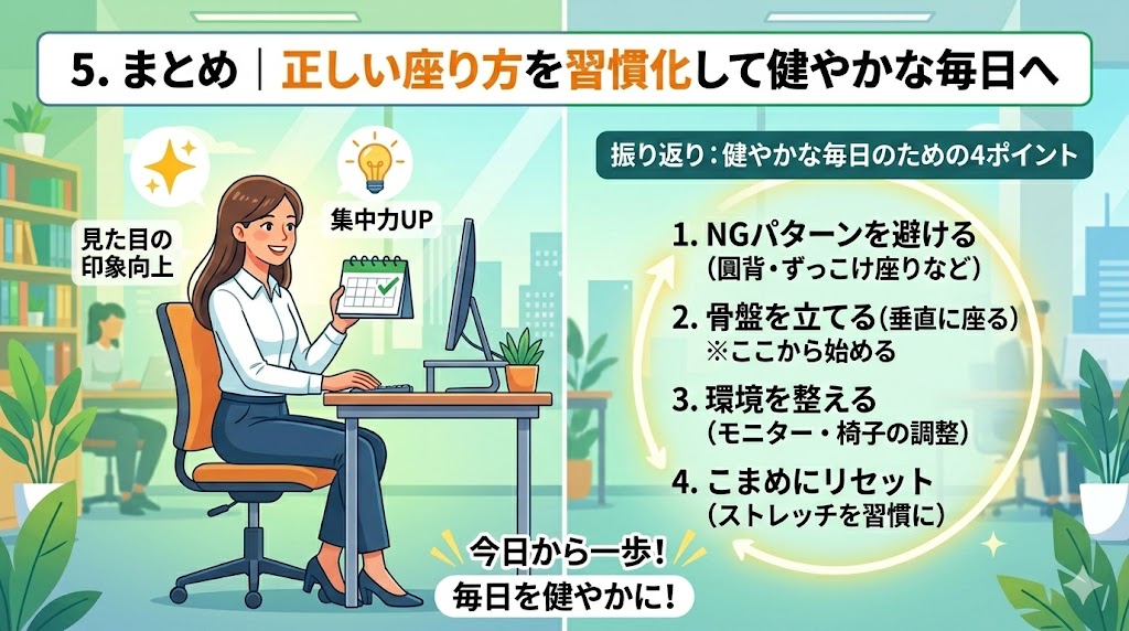 5.まとめ|正しい座り方を習慣化して健やかな毎日へ