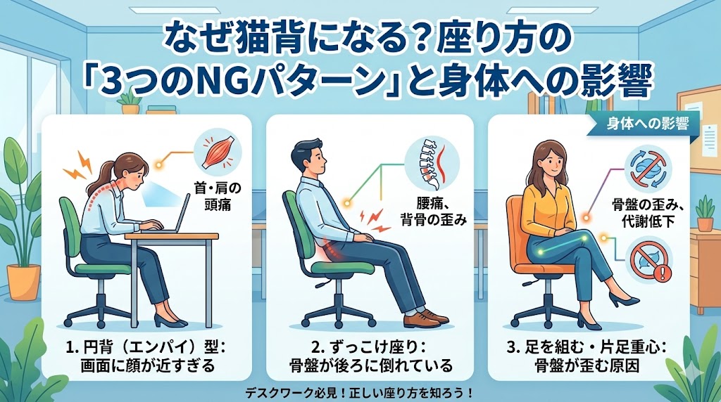 1.なぜ猫背になる?座り方の「3つのNGパターン」と身体への影響