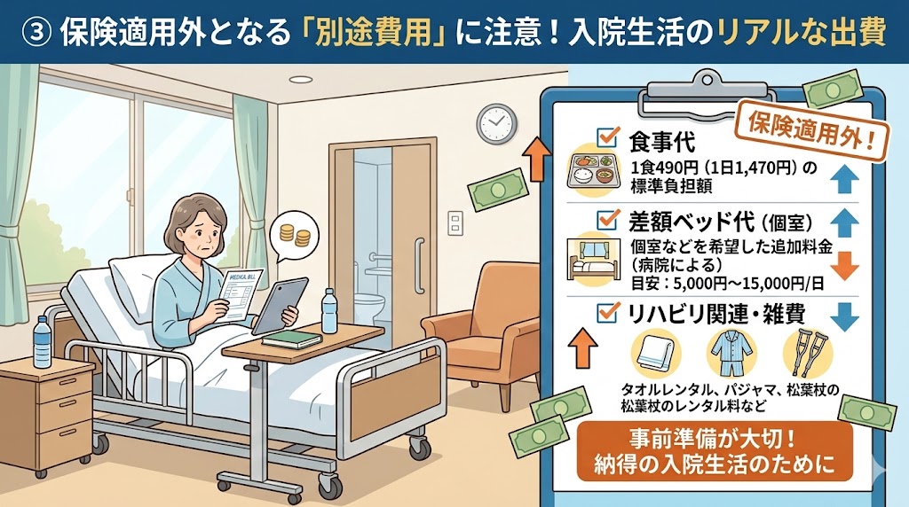 3.保険適用外となる「別途費用」に注意!入院生活のリアルな出費