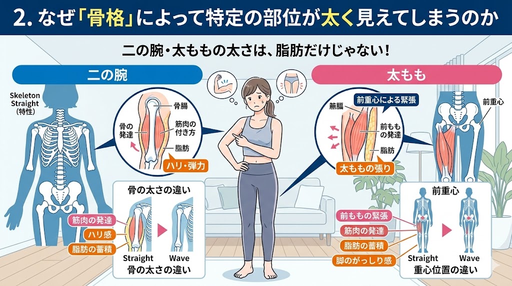2.なぜ「骨格」によって特定の部位が太く見えてしまうのか