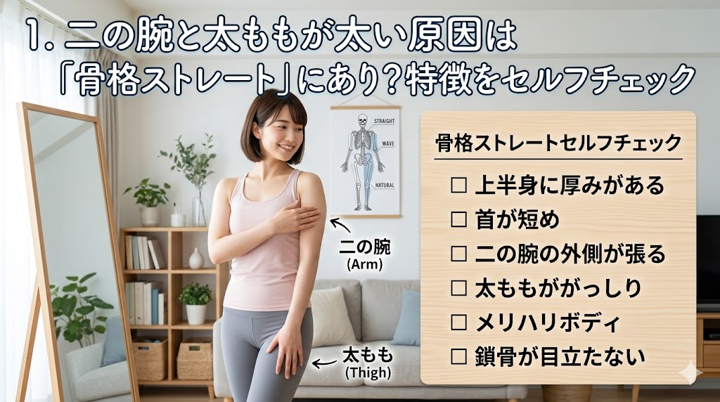 1.二の腕と太ももが太い原因は「骨格ストレート」にあり?特徴をセルフチェック