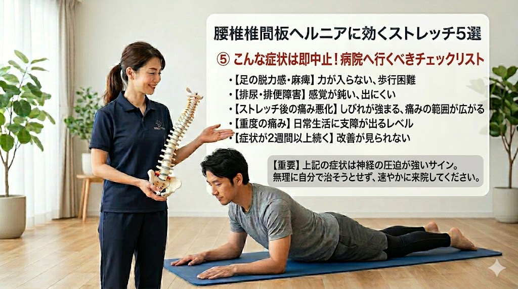 #ストレッチ中止のサイン #腰椎椎間板ヘルニアの注意点 #無理は禁物 #医療機関への来院 #セルフケアの限界