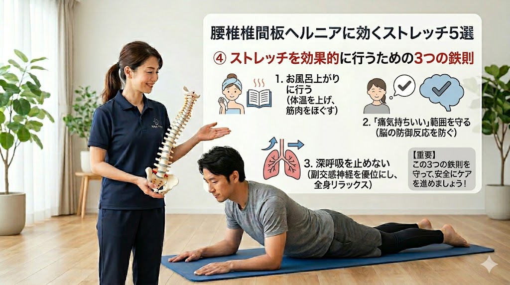腰椎椎間板ヘルニアのケアにおいて、筋肉を柔らかくするためには「タイミング」と「感覚」がとても大切だと言われています。ここでは、毎日のセルフケアをより価値のある時間にするための、3つのルールを確認していきましょう。