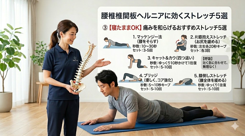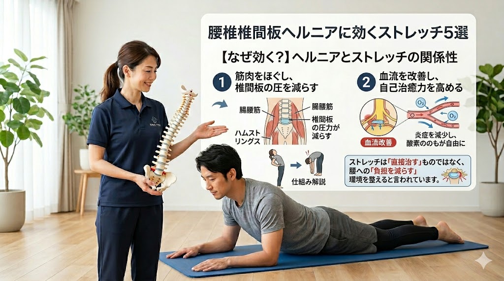 「ヘルニアなのに腰を動かして大丈夫かな?」と不安に思う方も多いですよね。実は、適切なストレッチはつらい症状を和らげるための強力な味方になってくれるんです。