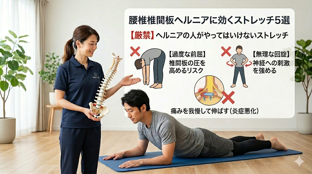 #やってはいけないストレッチ #前屈厳禁 #腰椎椎間板ヘルニア #腰痛悪化 #セルフケアの注意点