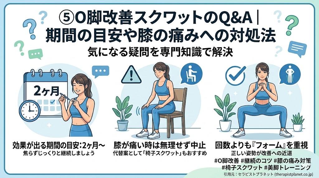 5.O脚改善スクワットのQ&A|期間の目安や膝の痛みへの対処法