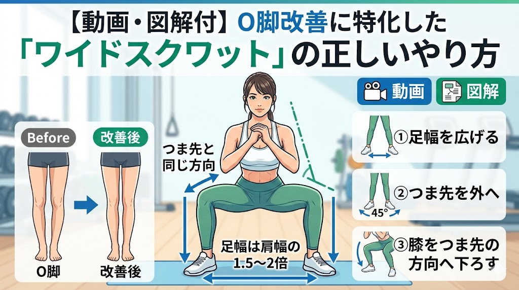 2.【動画・図解付】O脚改善に特化した「ワイドスクワット」の正しいやり方