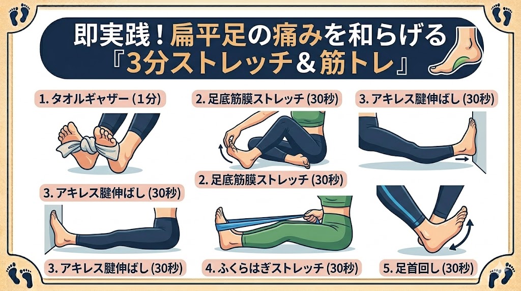 3. 即実践!扁平足の痛みを和らげる「3分ストレッチ&筋トレ」