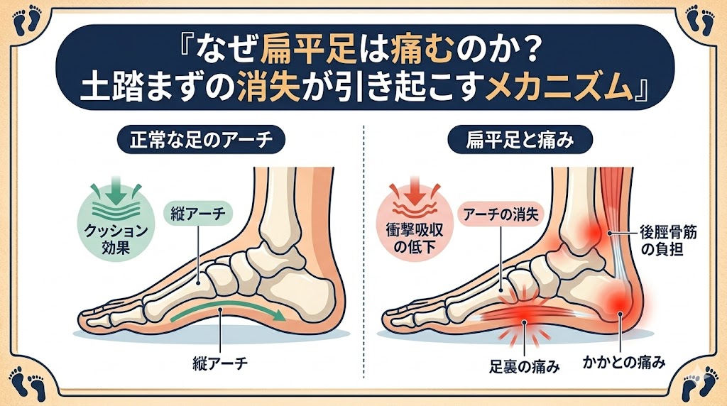 1. なぜ扁平足は痛むのか?土踏まずの消失が引き起こすメカニズム