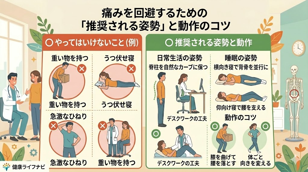 3. 痛みを回避するための「推奨される姿勢」と動作のコツ
