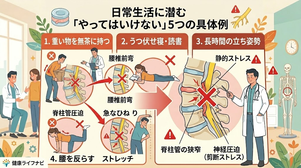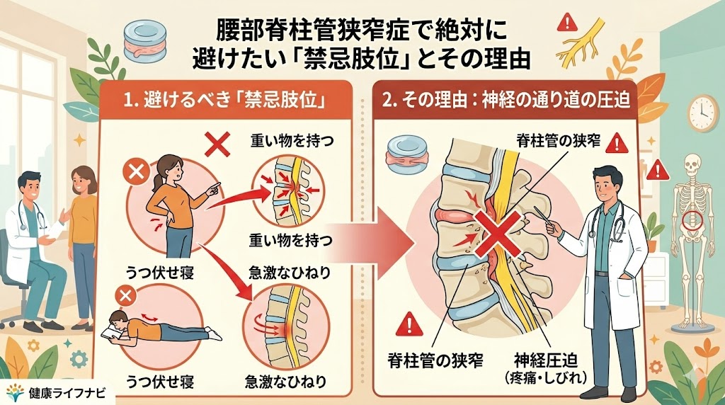1. 腰部脊柱管狭窄症で絶対に避けたい「禁忌肢位」とその理由