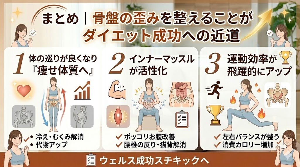 5.まとめ|骨盤の歪みを整えることがダイエット成功への近道