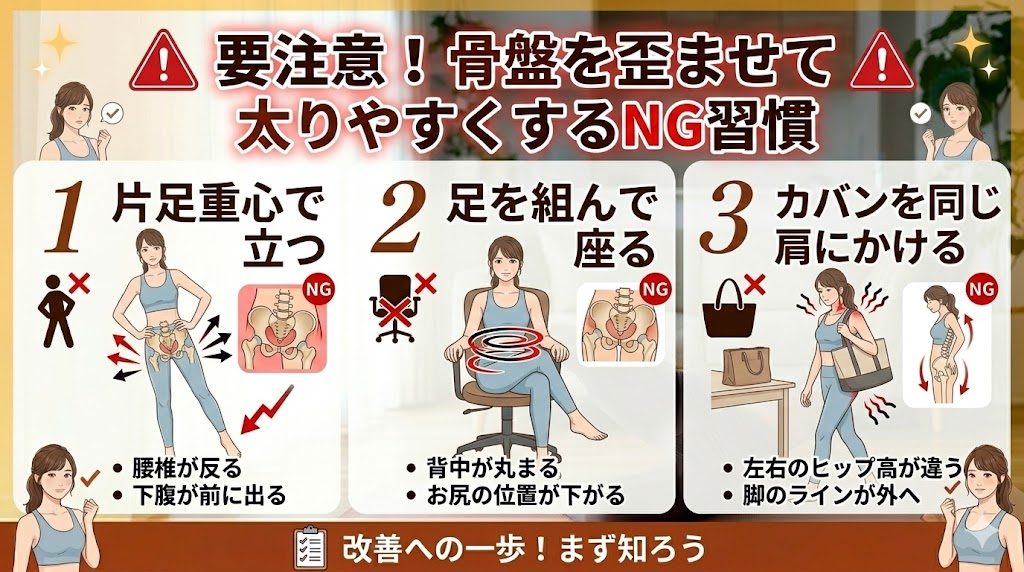 #骨盤の歪み #太る習慣 #姿勢改善ダイエット #足を組む癖 #痩せ体質への近道