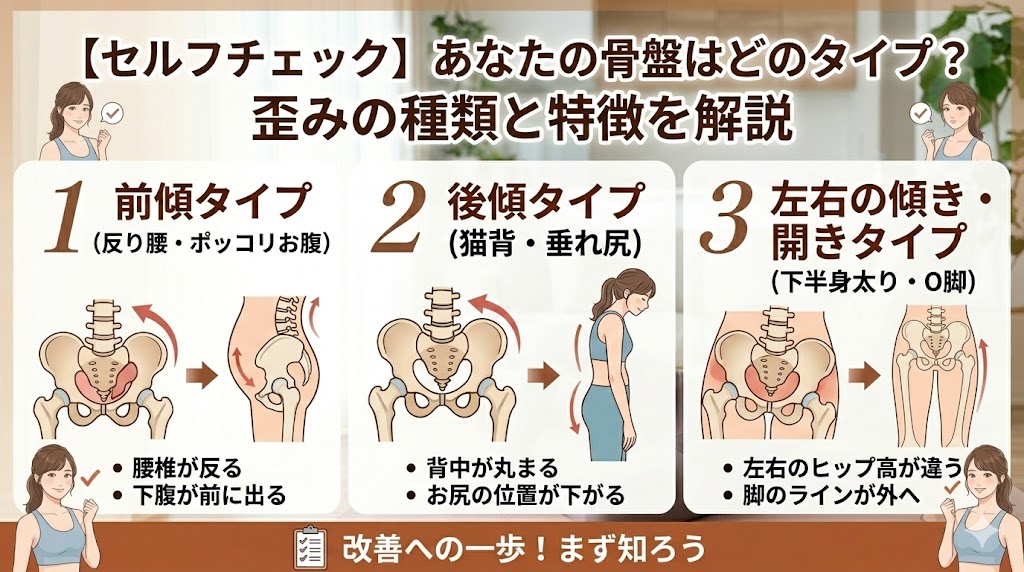 2.【セルフチェック】あなたの骨盤はどのタイプ?歪みの種類と特徴
