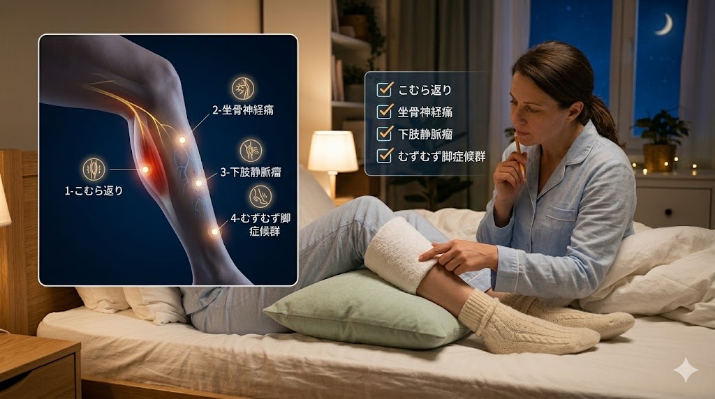 ここでは、夜中の足の痛みを引き起こす代表的な4つの原因を詳しく見ていきましょう。ご自身の症状と照らし合わせながら、チェックしてみてくださいね。