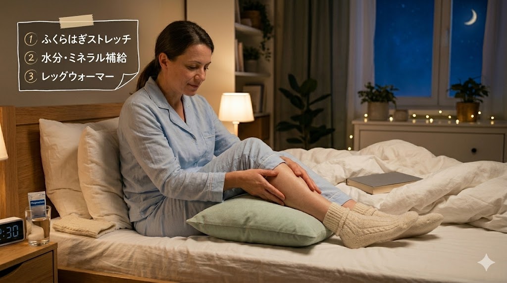 まずは夜中に痛みが出たとき、布団の中でゆっくりとストレッチをしたり、寝る姿勢を工夫したりすることから試してみてください。小さな工夫の積み重ねが、筋肉の緊張をほぐすきっかけにつながると考えられています。