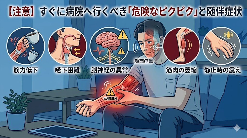 ③ 【注意】すぐに病院へ行くべき「危険なピクピク」と随伴症状