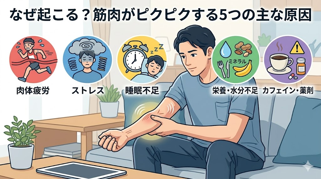 ② なぜ起こる?筋肉がピクピクする5つの主な原因(疲労・ストレス・栄養不足)