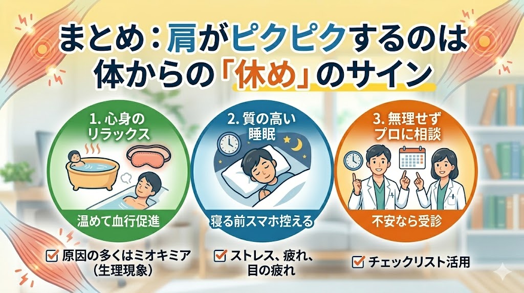 ⑤ まとめ:肩がピクピクするのは体からの「休め」のサイン