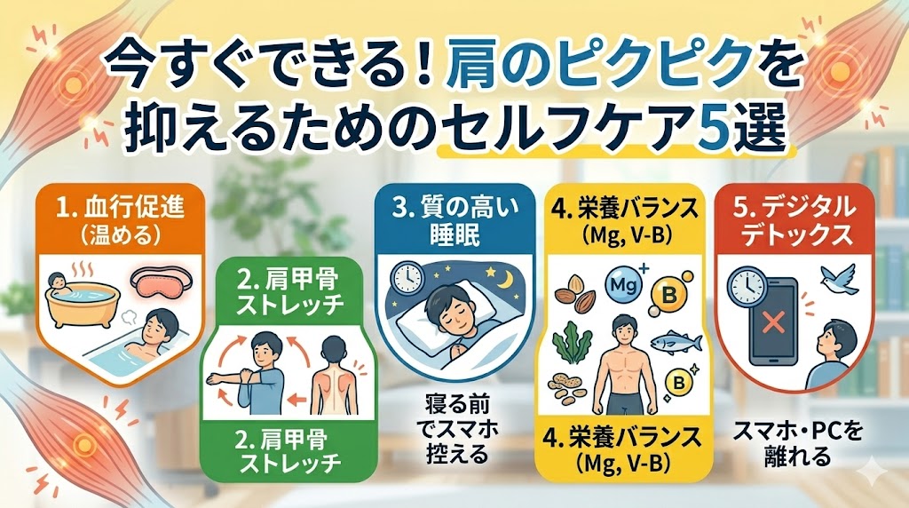 ④ 今すぐできる!肩のピクピクを抑えるためのセルフケア5選