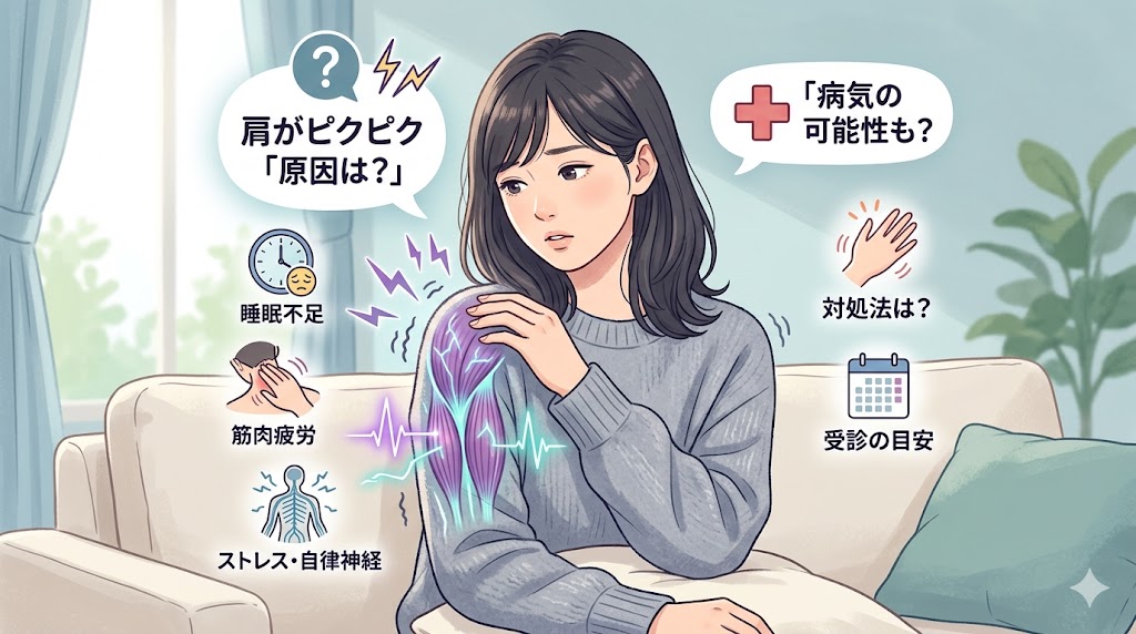 肩がピクピクと自分の意思に反して動く原因は、筋肉の疲労やストレス、栄養不足が一般的です。しかし、稀に重大な病気が隠れていることもあります。本記事では、肩の痙攣が起こる理由、放置してはいけない危険なサイン、何科を受診すべきかについて、詳しく解説します。