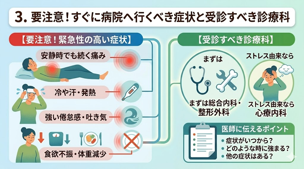 3. 要注意!すぐに病院へ行くべき症状と受診すべき診療科