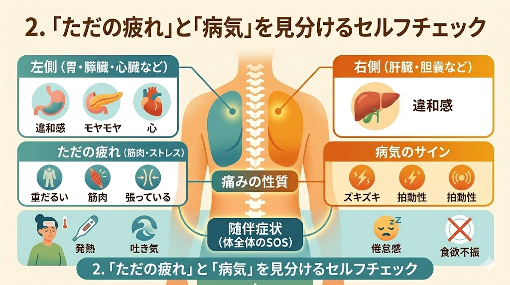 #背中セルフチェック #痛みの場所 #随伴症状 #早期発見 #違和感の見分け方