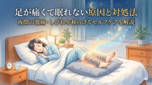 足痛くて寝れないとお悩みの方へ。夜中に足が痛む原因は、筋肉の疲労から坐骨神経痛、下肢静脈瘤などの病気まで多岐にわたります。この記事では、今すぐ痛みを和らげる応急処置や、放置してはいけない危険な症状のセルフチェック法を解説。ぐっすり眠るための改善策を見つけましょう。