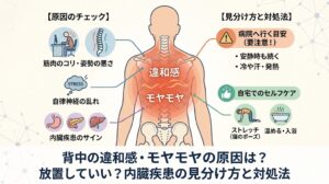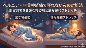 腰の骨で神経が圧迫されると、その先の足にまで痛みやしびれが飛んでくるんですね。寝返りを打つたびにピキッとした痛みが走るなら、まずは無理に動かさず、楽な姿勢を探すことが大切ですよ。