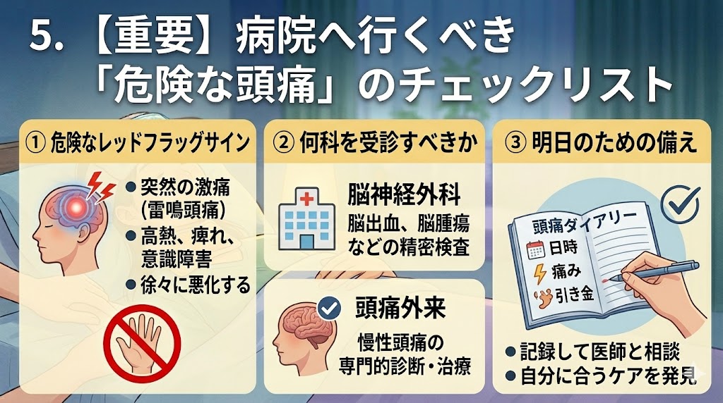 5. 【重要】病院へ行くべき「危険な頭痛」のチェックリスト