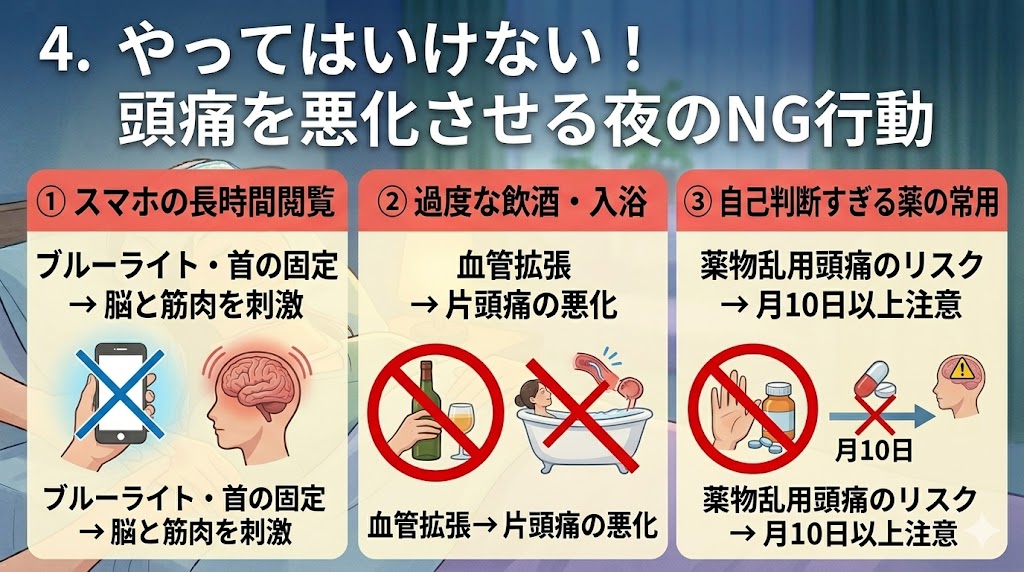 4. やってはいけない!頭痛を悪化させる夜のNG行動
