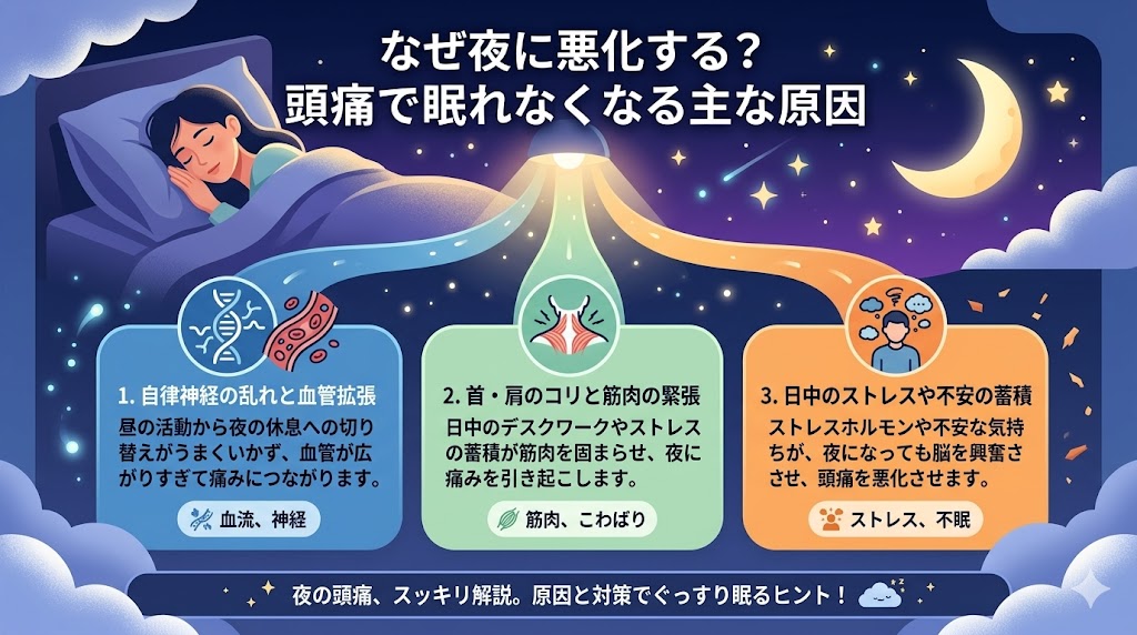 2. なぜ夜に悪化する?頭痛で眠れなくなる主な原因