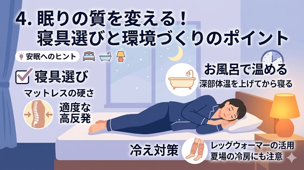 4. 眠りの質を変える!寝具選びと環境づくりのポイント