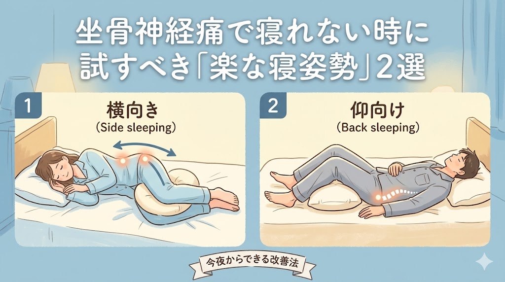 1. 坐骨神経痛で寝れない時に試すべき「楽な寝姿勢」2選