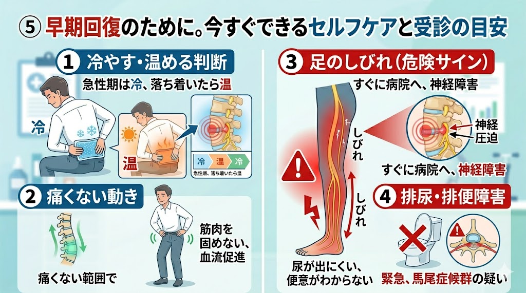 ⑤ 早期回復のために。今すぐできるセルフケアと受診の目安