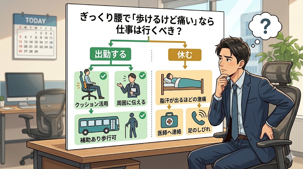 1. ぎっくり腰で「歩けるけど痛い」なら仕事は行くべき?判断の目安