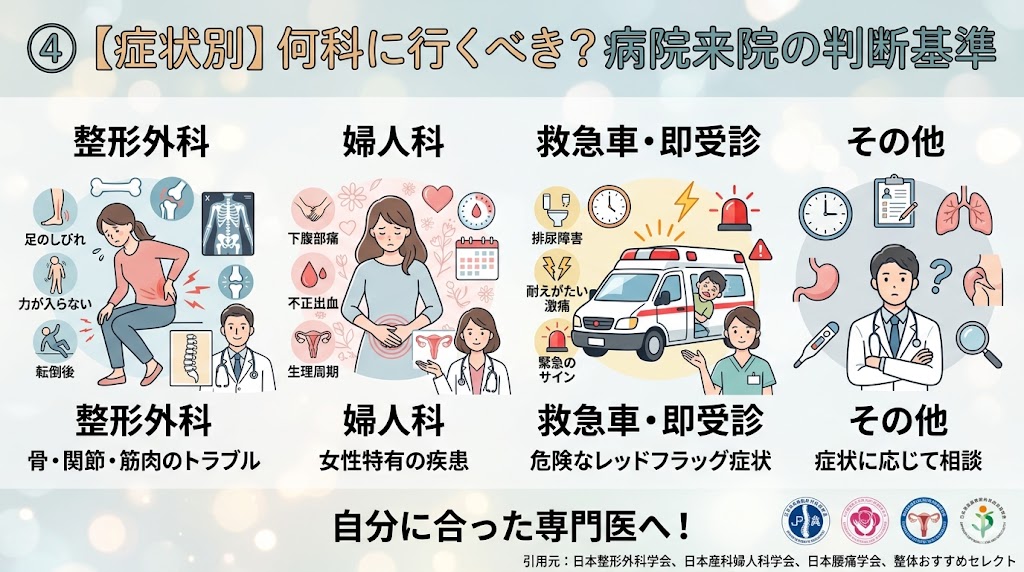 #何科に行けばいい #整形外科 #婦人科 #レッドフラッグ #腰痛の受診目安