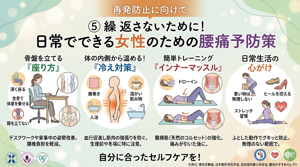 ⑤ 繰り返さないために!日常でできる女性のための腰痛予防策
