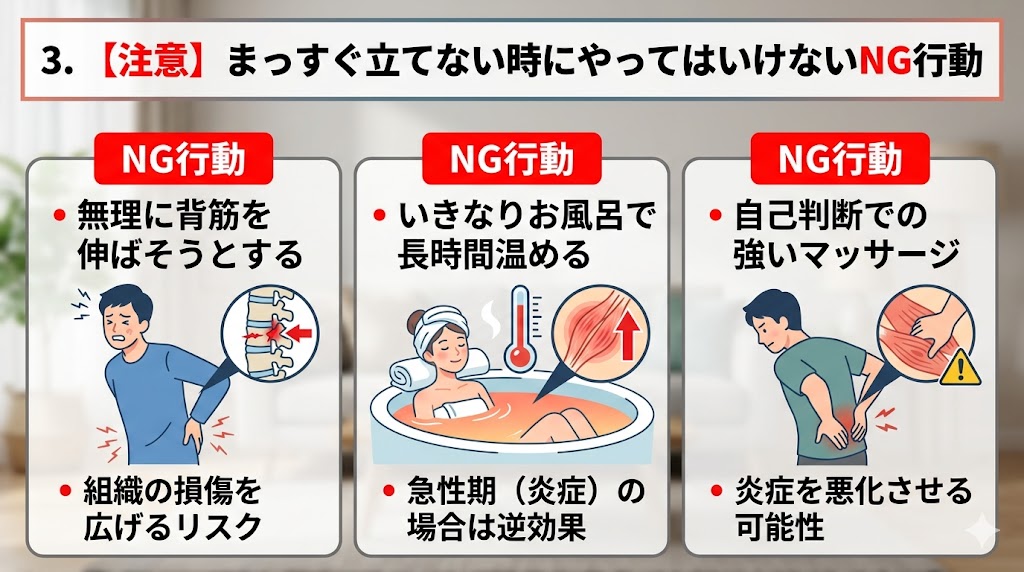 3. 【注意】まっすぐ立てない時にやってはいけないNG行動