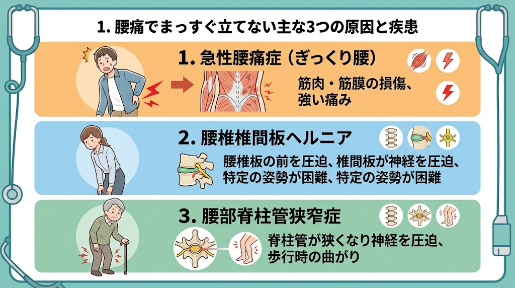 1. 腰痛でまっすぐ立てない主な3つの原因と疾患
