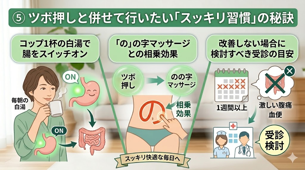 ⑤ ツボ押しと併せて行いたい「スッキリ習慣」の秘訣