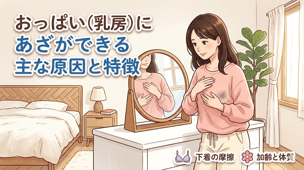 おっぱい(乳房)にあざを見つけると不安になりますが、多くは打撲や内出血です。しかし、中には乳がんや血液疾患のサインである可能性も。本記事では、身に覚えのないあざの原因、受診の目安、皮膚科・乳腺外科などの適切な診療科について詳しく解説します。