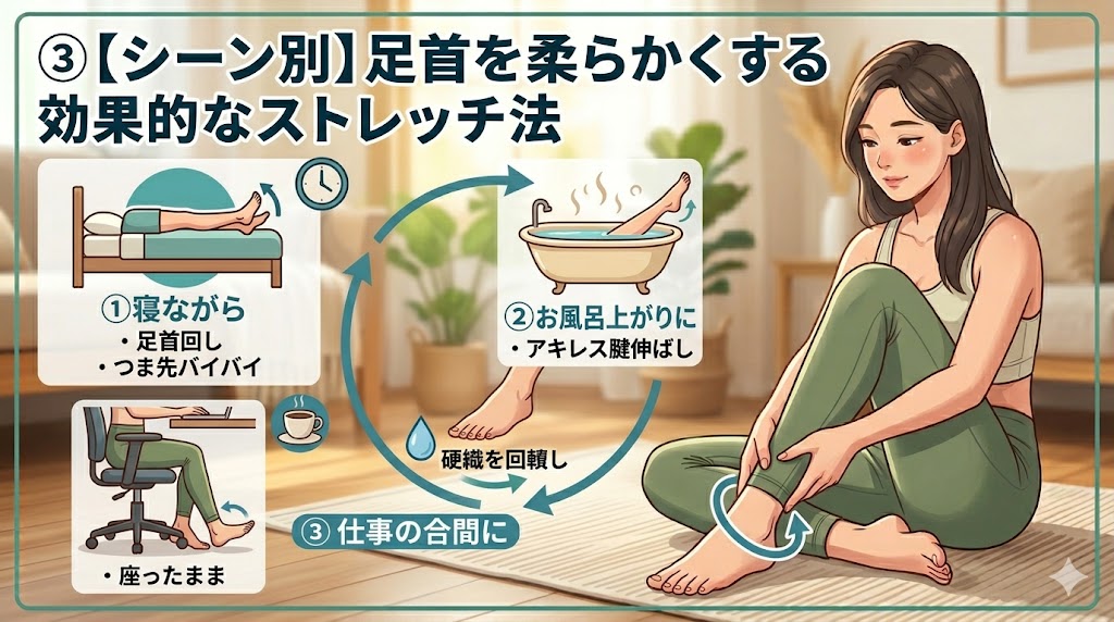 ③ 【シーン別】足首を柔らかくする効果的なストレッチ法