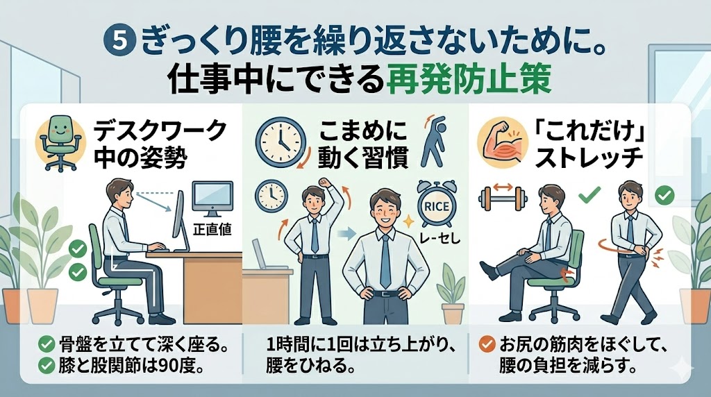#ぎっくり腰再発防止 #デスクワーク姿勢 #腰痛ストレッチ #仕事中の習慣 #健康経営